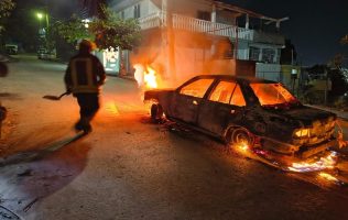 El taxi quedó consumido de manera total por el incendio